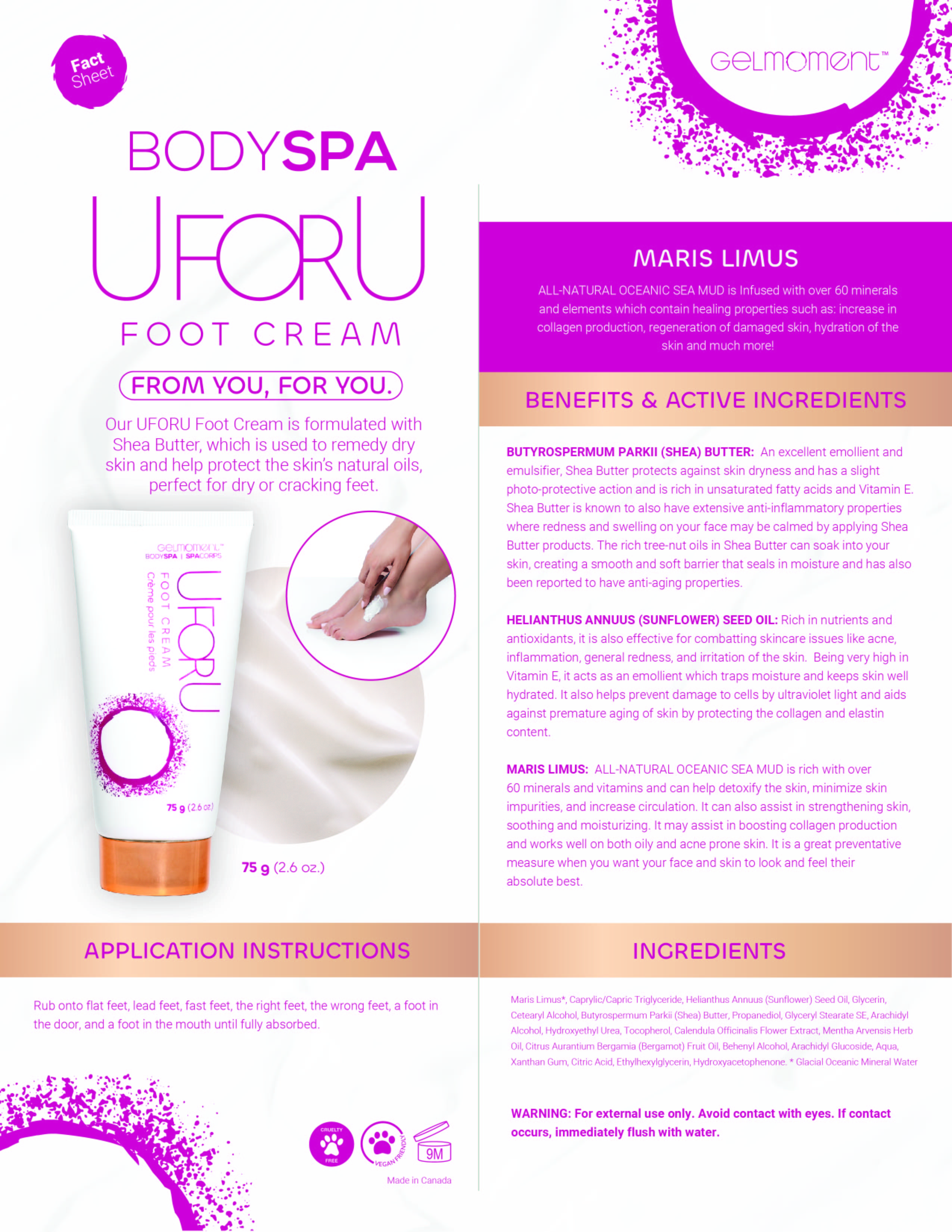 UFORU Foot Cream is the ultimate solution to dry, cracked feet. It’s not easy to walk a mile in your shoes! Give your feet the attention they deserve by soothing your soles with the intense hydration of shea butter. Silky smooth from heel to toe, you’ll find yourself walking with a softer step.